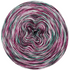 Das Farbverlaufsgarn ist gefacht, mehrere Fäden laufen nebeneinander und sind nicht verzwirnt. Die Farbwechsel entstehen durch das Verbinden spezieller Knoten.