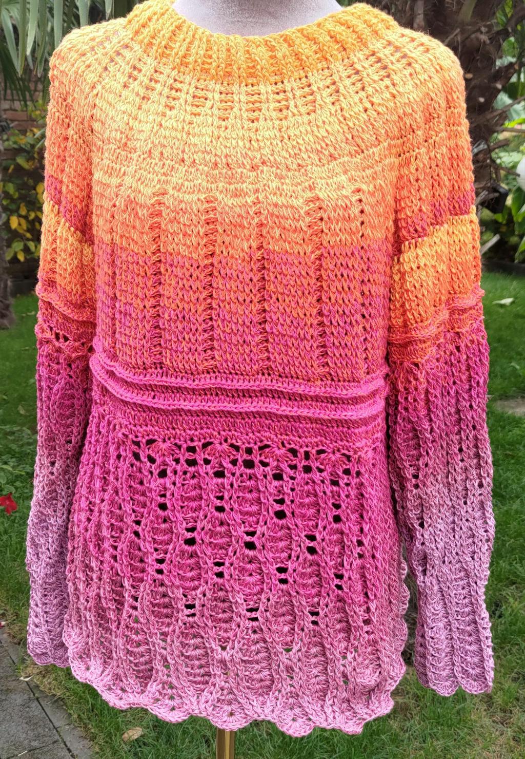 Außerdem sind dort viele Anleitungen mit Farbverlaufsgarn gearbeitet.